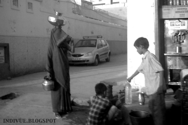 - Image 5: This photograph shows a woman carrying utensils, likely on her way to or from fetching water. The simplicity of her attire, yet the graceful draping of the saree covering her totally, demonstrates the blend of utility and tradition in everyday clothing.