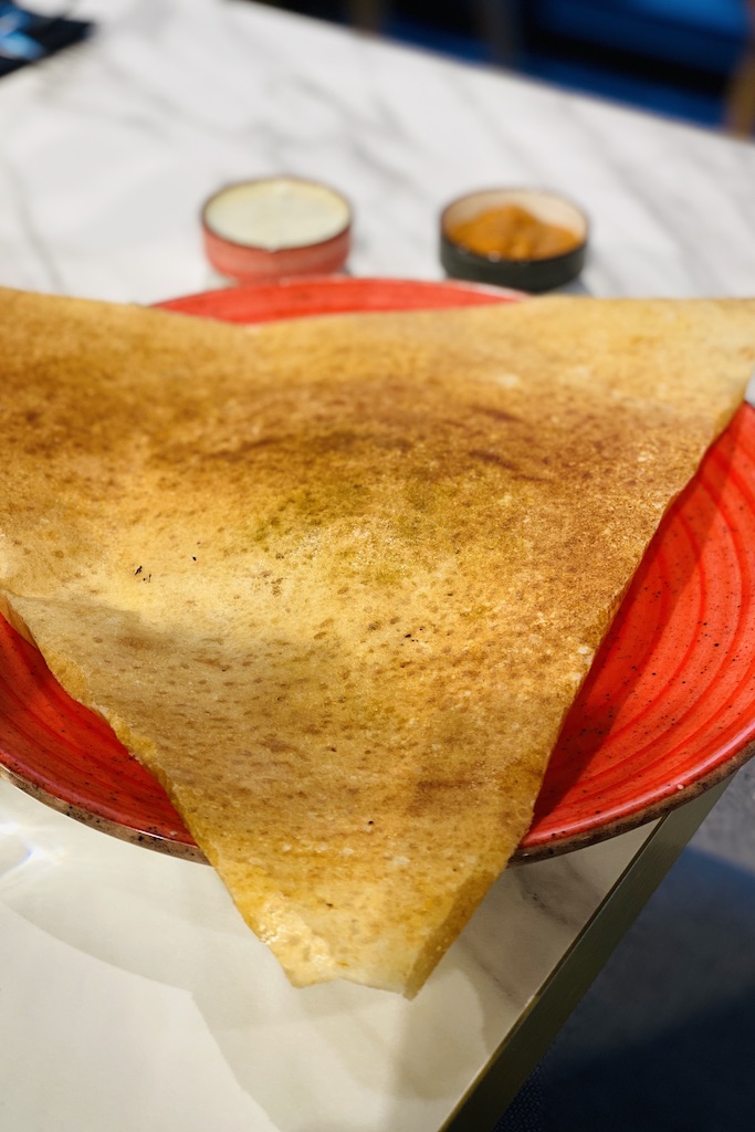 The menu was well labeled with vegetarian and gluten-free foods separately, and gluten-free alternatives were commendably found. However, the selection was not very large due to the fact that the restaurant had only been open for a couple of days, but a replenishment was reportedly expected soon. I will wait with interest to see if we will get paneer dosa, potato wada, uttapam and South Indian thali later.