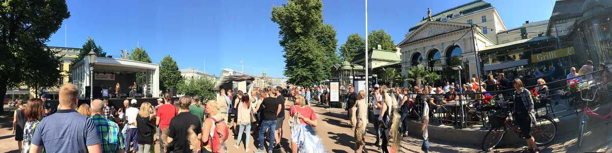 Panorama photo of Espa stage and restaurant Kappeli in Esplanadi park